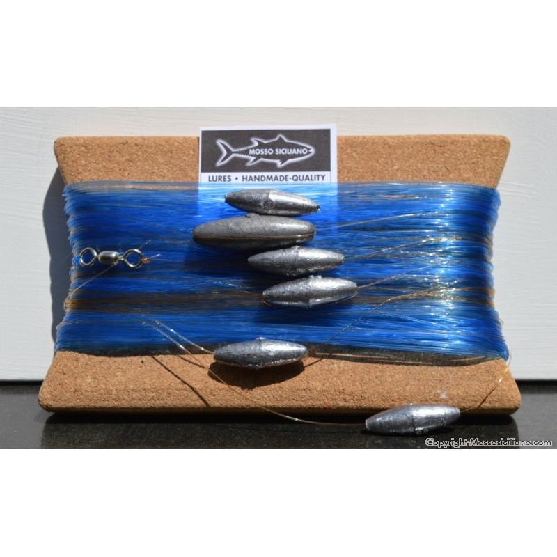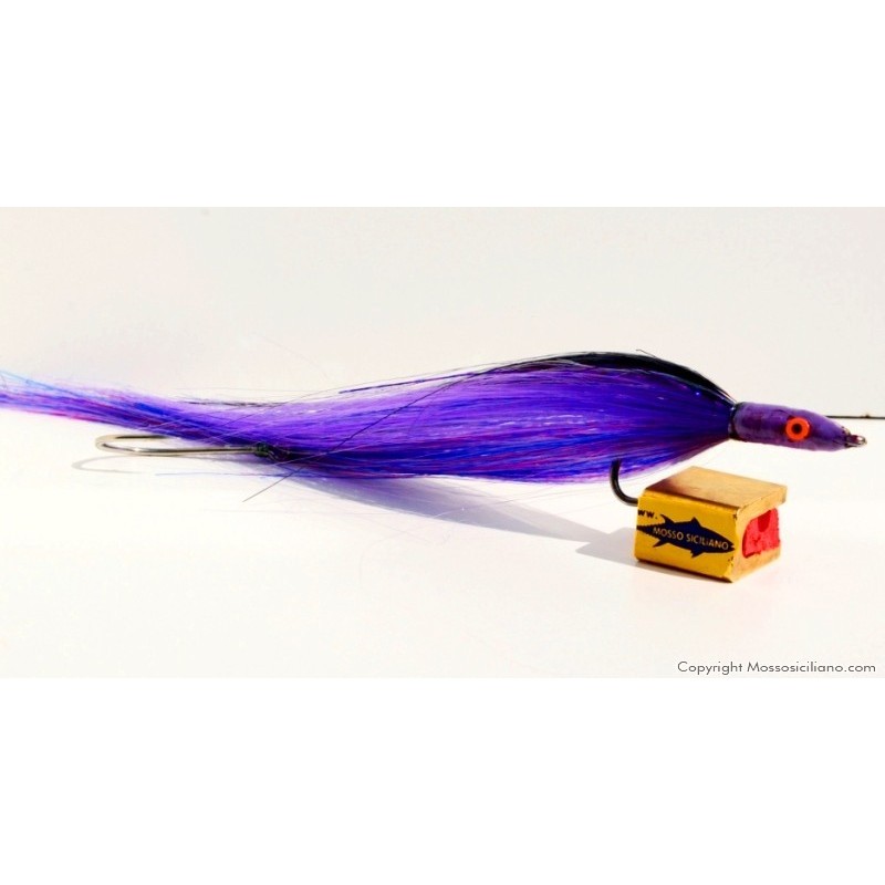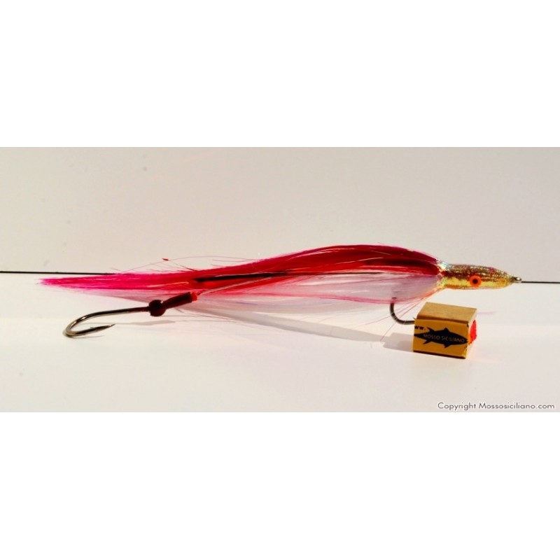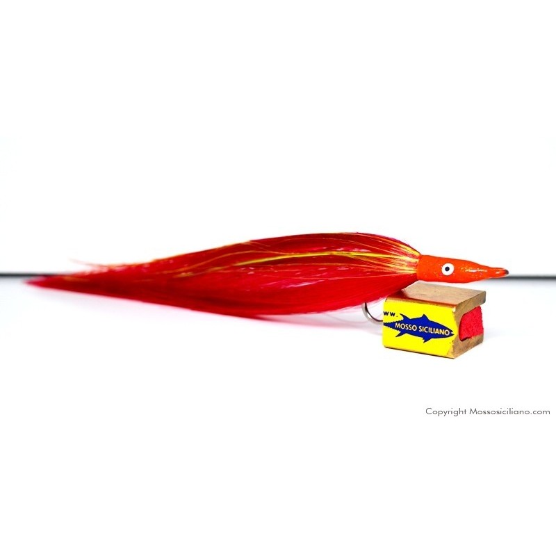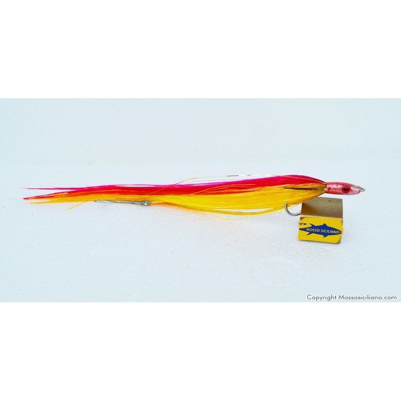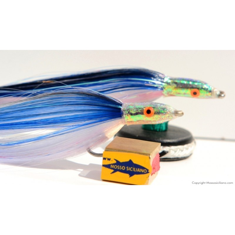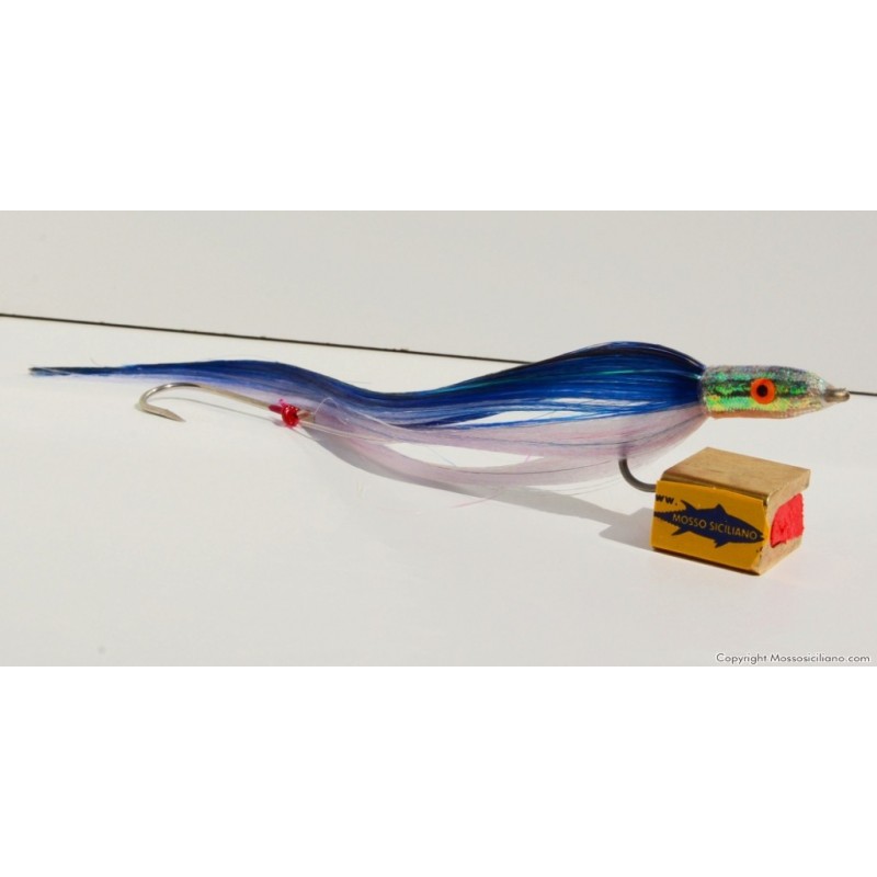 Aguglia artificiale per la traina sotto costa ,indispensabile per un pescatore esigente. Costruita con filamenti fluorescenti alla luce e n.2 ami del 4/0 montati in tandem collegati con robusto filo di nylon .Prodotto ITALIANO di alta qualità .