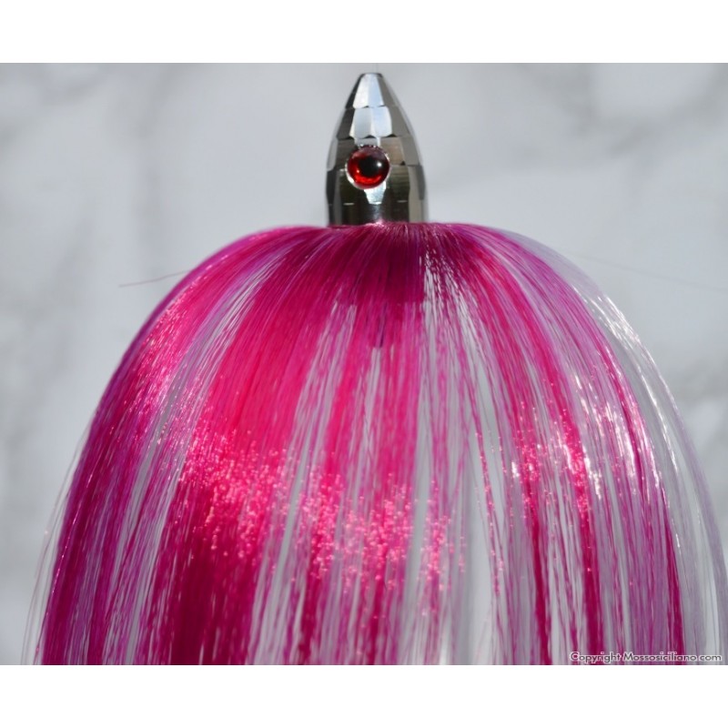Lures:cm 16 .Costruito con ns filamenti fluorescenti alla luce.velocità traina: 5/10 nodi superfice o mezz acqua.