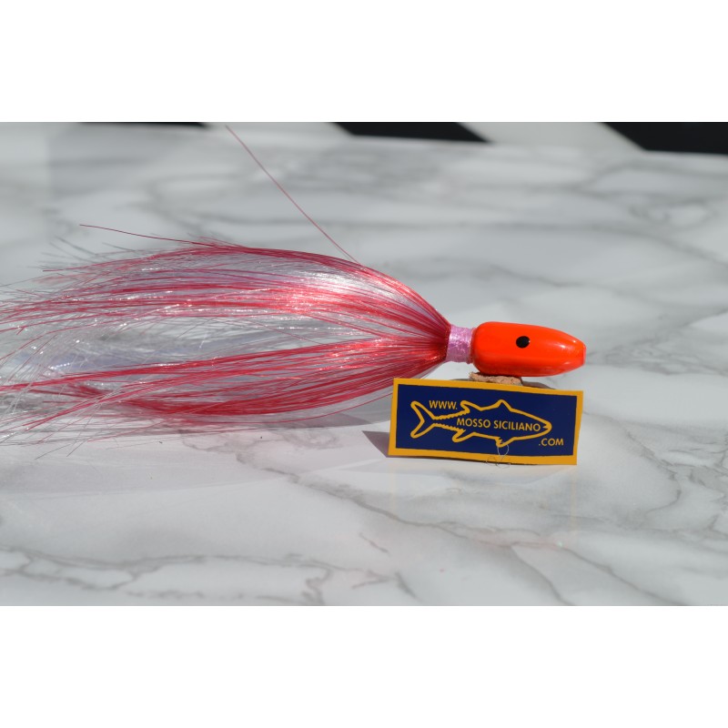 Mossosiciliano JIGS,testina fluorescente alla luce,con amo intercambiabile .Anche in fase di pesca sostituendo amo e filo, siamo pronti ad affrontare bene la ferrata ad ogni misura di pesce.Nata per la traina ,trova vasto uso anche per spinning sulle mangianze di sgombri , tonnetti, palamite , lampughe ecc.ecc...La sua testina fluorescente alla luce dona il tocco giusto .Le piccole teste possono essere di formato o di colore diverso,ma le caratteristiche sono identiche.Colore testina gialla o rossa,secondo disponibilità.